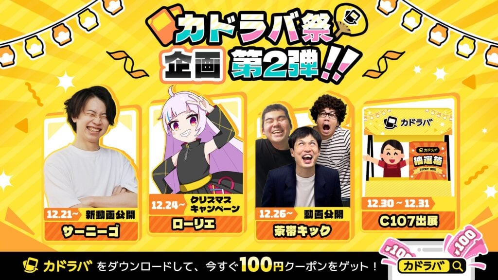「カドラバ」は、2025年12月30日(火)・31日(水)に開催される「コミックマーケット107」に企業ブースとして出展いたします。